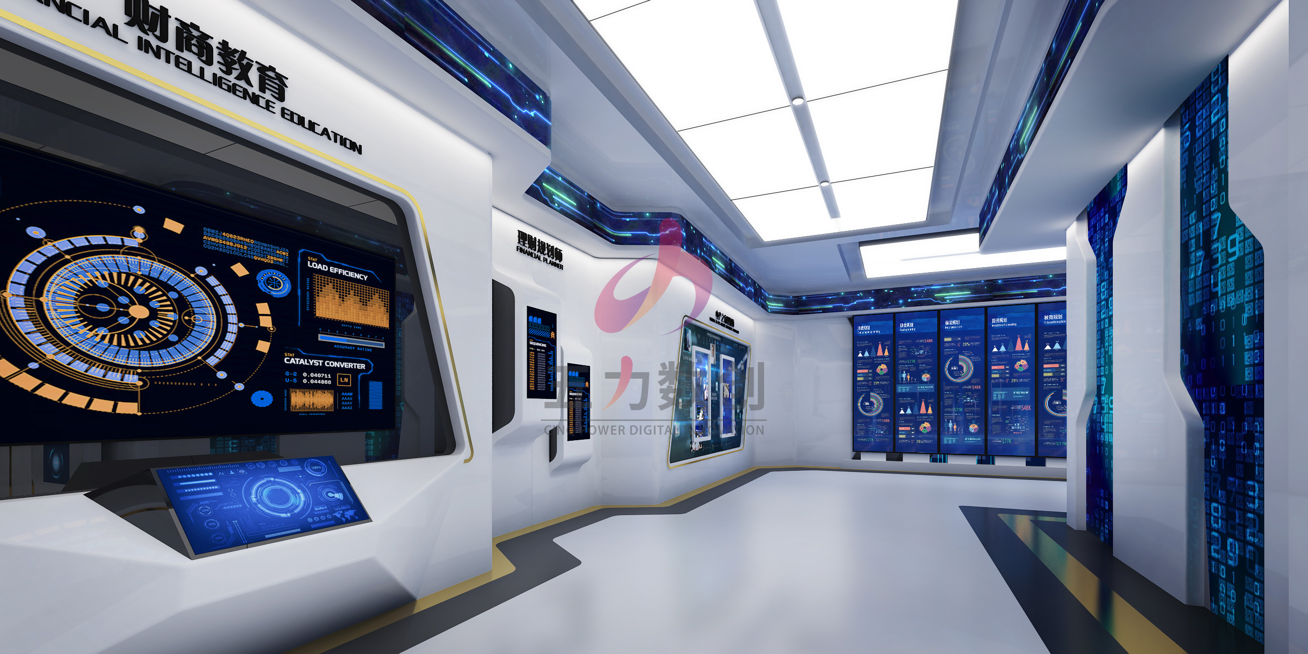 五力數創根據中產之家需求,為中產之家智能服務體驗中心打造富有科技感的數據展示空間,營造沉浸式體感互動的主題空間,綜合展示企業綜合實力。